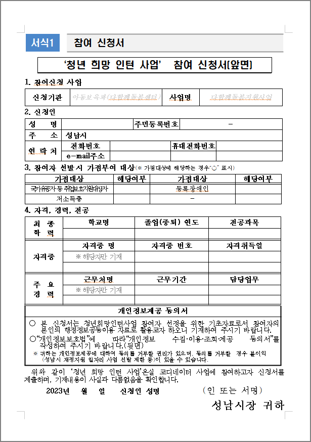 가. 참여신청서 1부